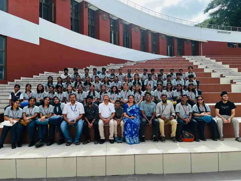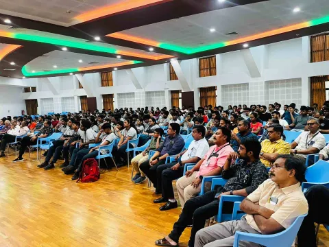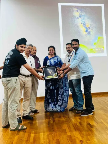 As part of the space day celebrations, IIST hosted an inspiring talk titled “Aryabhata to Gaganyaan: Ancient Wisdom to Infinite Possibilities” by Shri R. Hutton, Associate Director, LPSC., on 27th August 2025. The session traced India’s incredible journey in space science — from the launch of Aryabhata, the nation’s first satellite, to the ambitious Gaganyaan human spaceflight mission. The event saw active participation from school students, faculty members, and the IIST community. We were honored by the presence of our Vice Chancellor, Prof. Dipankar Banerjee. Shri Hutton was accompanied by two distinguished members from LPSC, who also interacted with the students. A memorable photo was taken with the school students to mark the occasion. As a token of appreciation, Shri Hutton was presented with a special memento — a Milky Way galaxy photograph captured by IIST students.